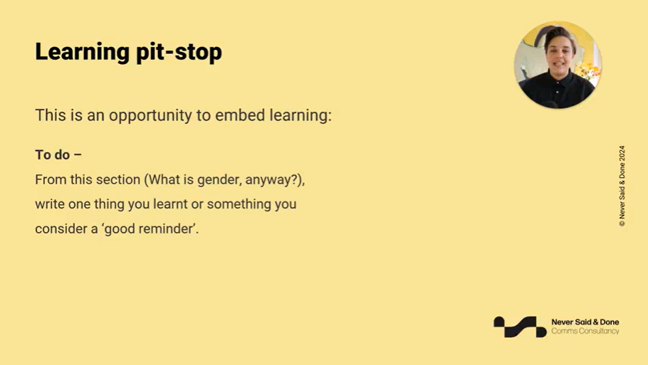 This training was created to act as a foundation for learning about gender-inclusive communication. I have created all the materials needed, to plug and play. If your org decided they wanted everyone to complete the training, it could be required learning each year, and/or as part of employee onboarding.